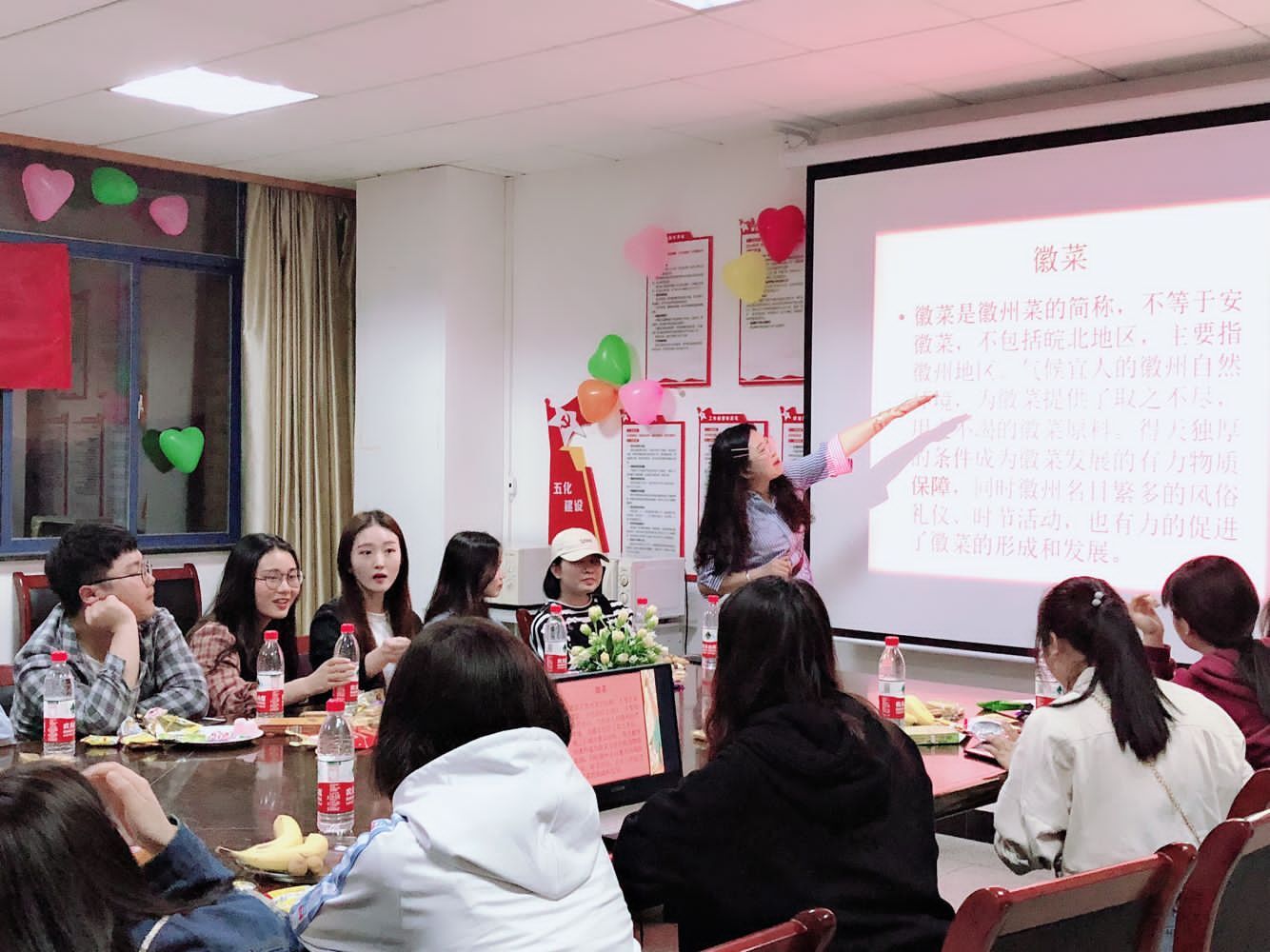 为了让同学们更加深刻的了解到中华饮食文化的魅力,由旅游管理学院心理部以及实践部共同举办以旅游美食与传统文化为主题的文化沙龙于2019.4.21在办公楼201召开。本次文化沙龙会议邀请了旅游管理学院许若晨老师作为主讲人。 许若晨老师首先向同学们介绍了八大菜系的来源,并详细地为同学们讲解了八大菜系中较为经典的菜品和用料,现场氛围十分愉悦。