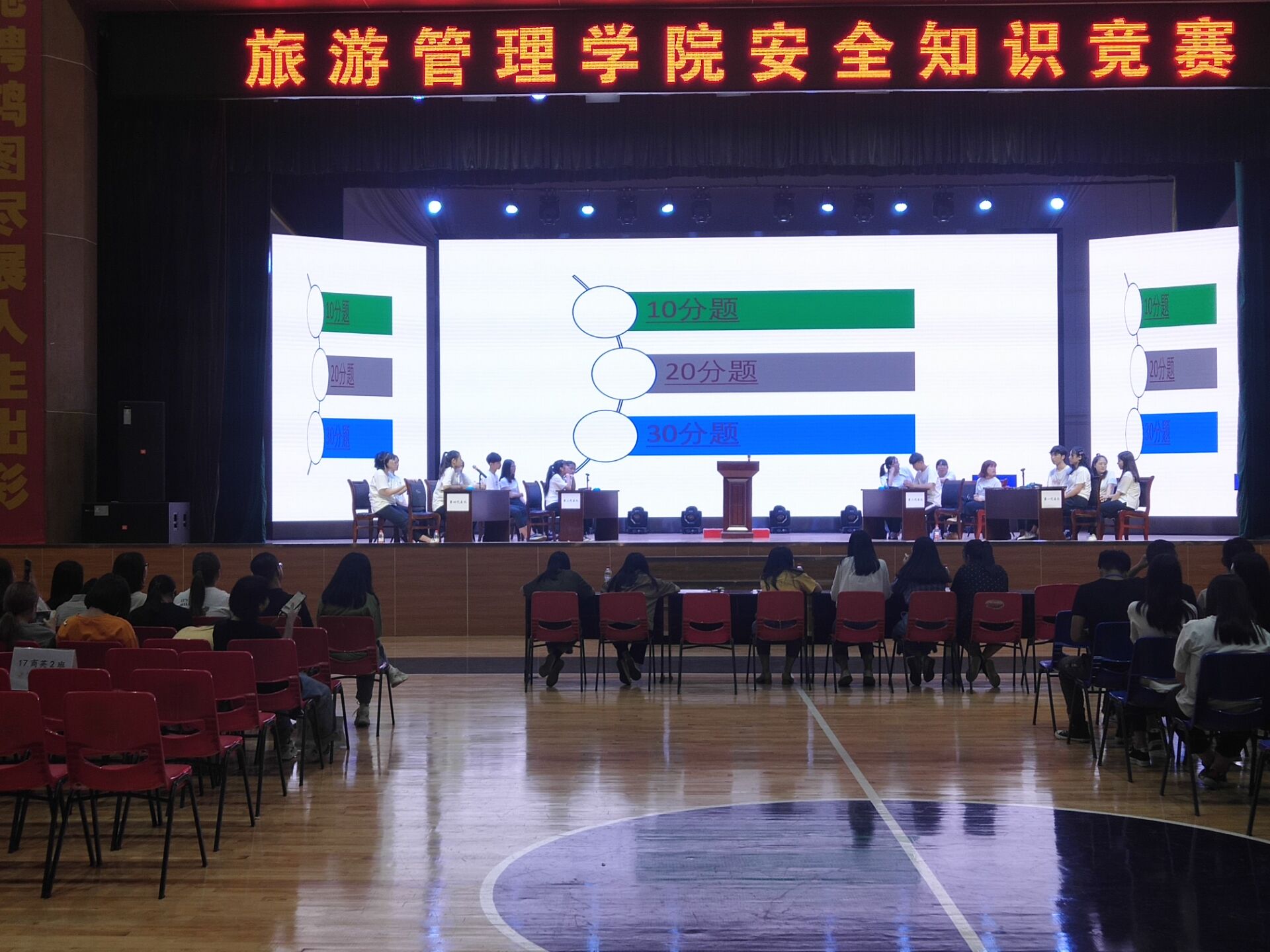 为了让同学们树立安全思想,加强安全防范意识,提高自我?;つ芰?,2019年5月29日晚19:30,由湖南商务职业技术学院主办、旅游管理学院治保部承办的安全知识竞赛在体育馆内成功举办。