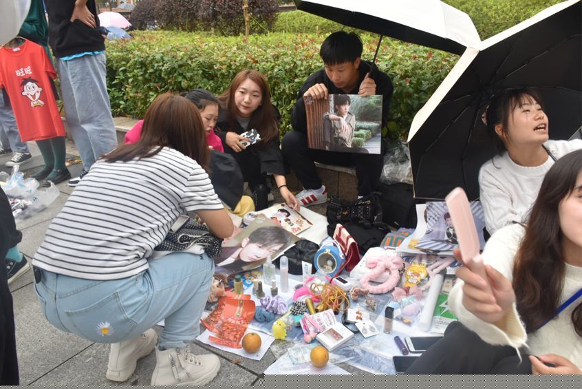 中午一下课,同学们就已经陆陆续续到达孔子广场,摆好摊位。即使天空飘着绵绵细雨,也抵挡不住大家的热情。在这里,文具、衣服等各类二手商品应有尽有,同学们将自己用不到的东西二次转卖,再次实现这些闲置物品的价值,有效促进了资源节约。