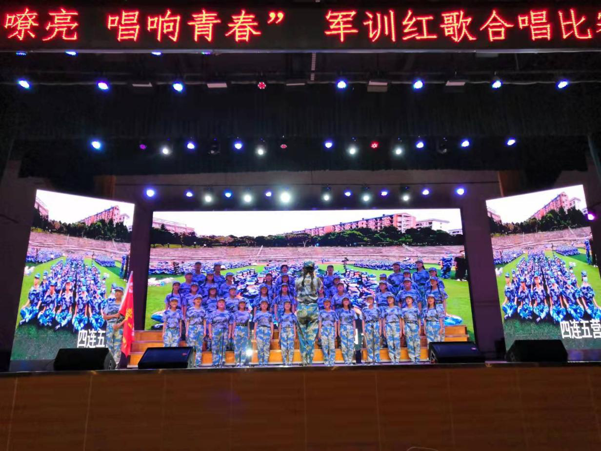 比赛中各军训连队精神饱满、士气高昂,用他们整齐的列队、飒爽的军姿、嘹亮的歌声接受着评委的检阅。比赛以四营二连带来的《黄河大合唱》拉开了序幕,参赛者手中摇曳的五星红旗仿佛是黑夜中最璀璨的明星。四营二连更是别出心裁地统一在腕部或身体的其他部位绑上了红丝带,充满时代特征性的物件装点使他们浑身散发着革命军人身上特有的年代气息和蓬勃朝气。四营四连用歌声向大家诠释了《强军战歌》应有的气派,一个个精彩绝伦的动作,一声声饱含深情的歌唱,将现场气氛拉向高潮,赢得了现场观众阵阵掌声。除此之外,各连队还带来了《军歌嘹亮向太阳》《人民军队忠于党》《大中国》《歌唱祖国》等大家耳熟能详的曲目。虽然都是红歌,但大家演绎形式各异,将革命时期那种豪壮、英勇的情怀展现得淋漓尽致。