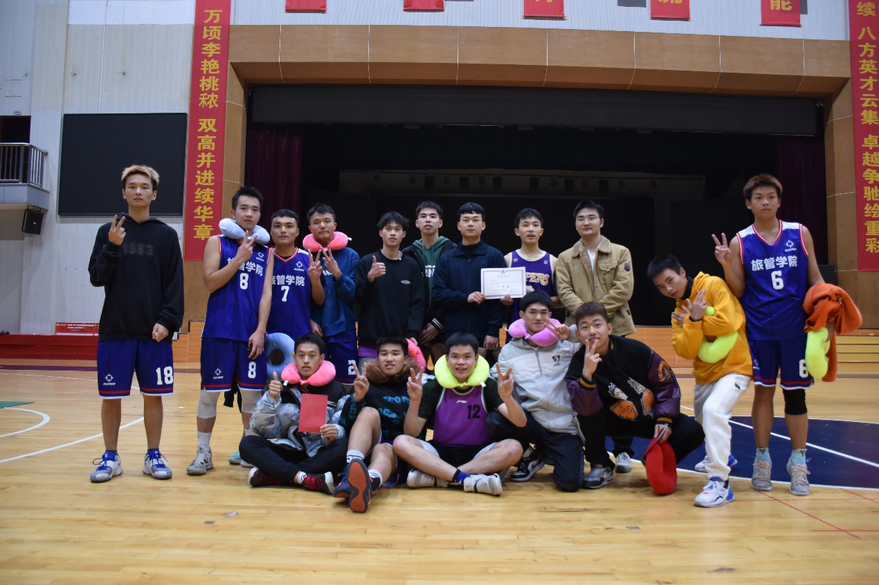 紧接着第二场比赛是酒管专业内部的角逐。由“胜利队”与“啊对对对队”对决,“胜利队”快攻猛打,应用弹跳能力稳住篮板投球,为队伍保持得分优势。这两支队伍一次又一次点燃全场的热情,引得场下观众阵阵欢呼,比赛场面十分激烈。经过不断地追逐,最后,“胜利队”以18:11的得分赢得此次比赛的冠军,“啊对对对队”获得第二名。赛后,礼仪队为这四支队伍颁了奖并呈上精美的奖品。