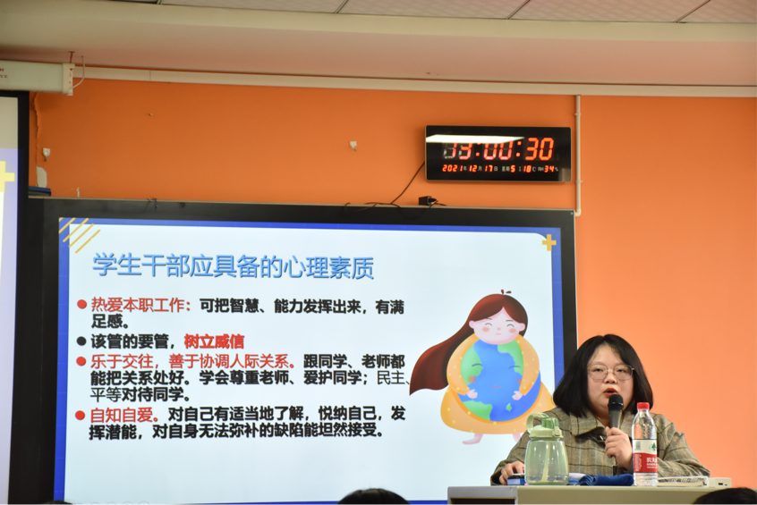 本次培训参与讲课的老师有校团委黄郁娇、旅管学院党总支副书记欧阳旭华、旅管学院团总支书记彭旭,辅导员刘耀东、江文雯、范焕。在本次培训中授课老师们分别围绕学生干部作风建设、写作能力训练、服务与提升自我、时间规划、心里素质素养和德行与担当等不同的方面进行了授课讲解。同学们积极回答老师提出的问题并参与互动。在培训过程中,同学们思维活跃,及时提出自己的疑问,培训会上老师也针对同学们提出的问题进行了详细的分析与解答。