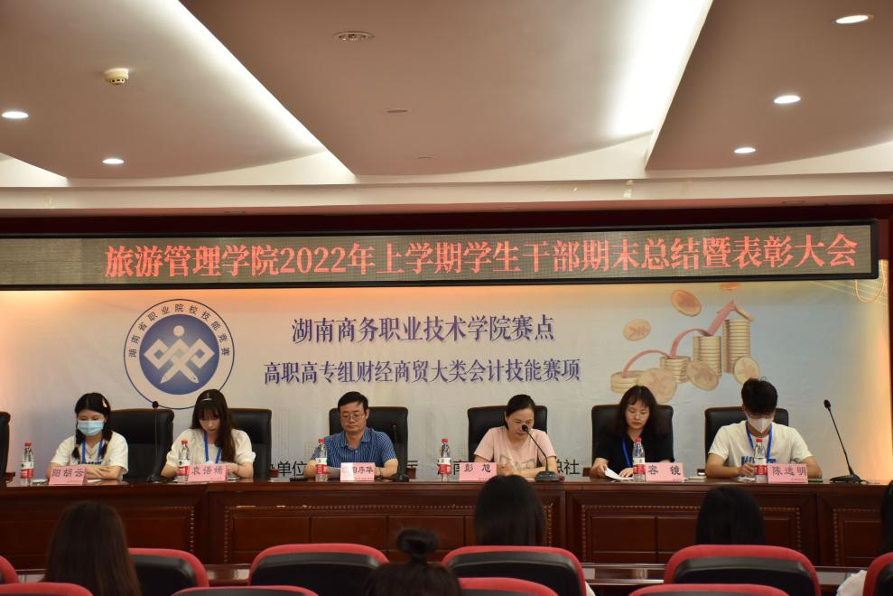 为表彰优秀,鼓励先进,树立典型,营造浓厚的学习、工作氛围,旅游管理学院于6月9日12点30分在办公楼6楼职工会议厅举行了2022年上学期学生干部期末总结暨表彰大会,出席本次大会的有我院党总支副书记欧阳序华、团总支书记彭旭以及团学分会全体成员。
