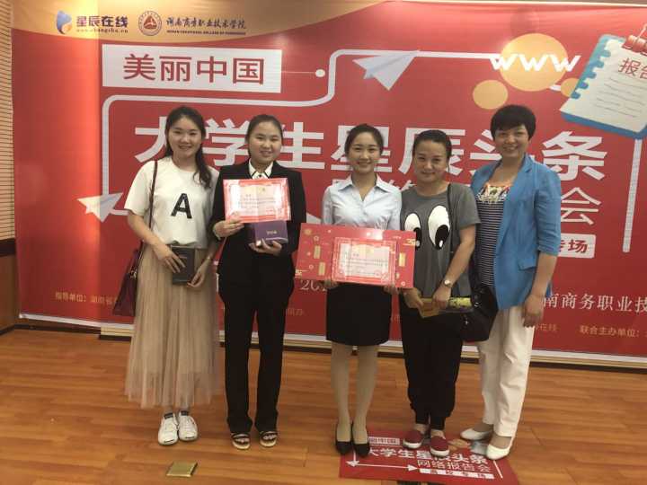 2018年5月24日,湖南商务职业技术学院于6楼会议室举办了“美丽中国——大学生星辰头条网络报告会”。此次比赛,我院黎庆同学荣获比赛第一名,李思雨同学荣获第二名。