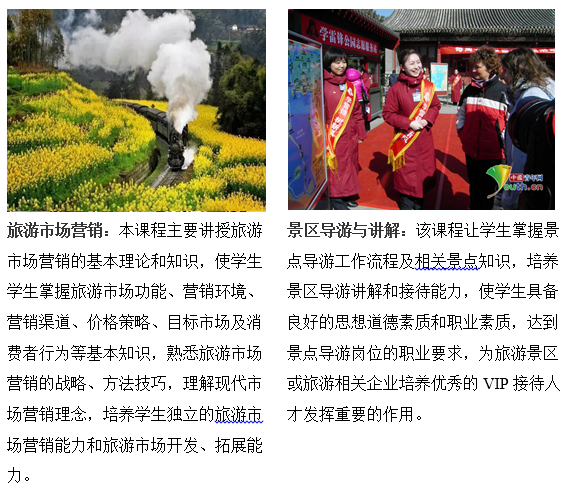 景区开发与管理专业我院为适应在国家乡村振兴战略和全域旅游新形势下开设的新专业,以培养服务于本土和外省传统自然和人文旅游景区景点、美丽乡村工程、特色小镇、乡村全域旅游休闲栖息地的高素质、高技能、高运营管理能力的高职尖端服务和管理型人才。