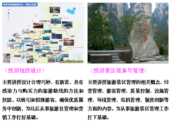 旅游管理专业为商务职院院级特色专业。本专业师资力量雄厚,是湖南省旅游教育培训示范点、湖南省旅游教育研究会副会长单位。本土业界素有商务职院出导游之说,本专业拥有一流的校内实训基地,坚持走“工学结合”“校企一体”“产、学、研”并进道路。导游证过级率位居湖南省前列,培养出了文花枝式最美导游谭杉,多次被媒体报道。