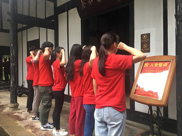 党员们首先抵达了第一站:蔡和森故居以及新民学会专题陈列馆。通过参观学习,全体党员了解了一百年前以毛泽东、蔡和森为代表的一代湖湘青年指点江山、激扬文字,以满腔热血投入民族救亡运动,寻求救国救民革命真理,为实现中华民族伟大复兴做出的巨大贡献?;疃讨校持Р咳宄稍泵娑缘称熘匚氯氲呈拇?。党员们铿锵有力的宣誓,表达了大家对先辈们的崇敬之心,更坚定了大家传承和发扬先辈精神的决心。随后,大家走进“建党先声”陈列馆、新民学会专题陈列馆,了解了新民学会创立和发展的历史以及对促进中国进步所起的作用,懂得了新民学会对促进中国共产党创建的意义。