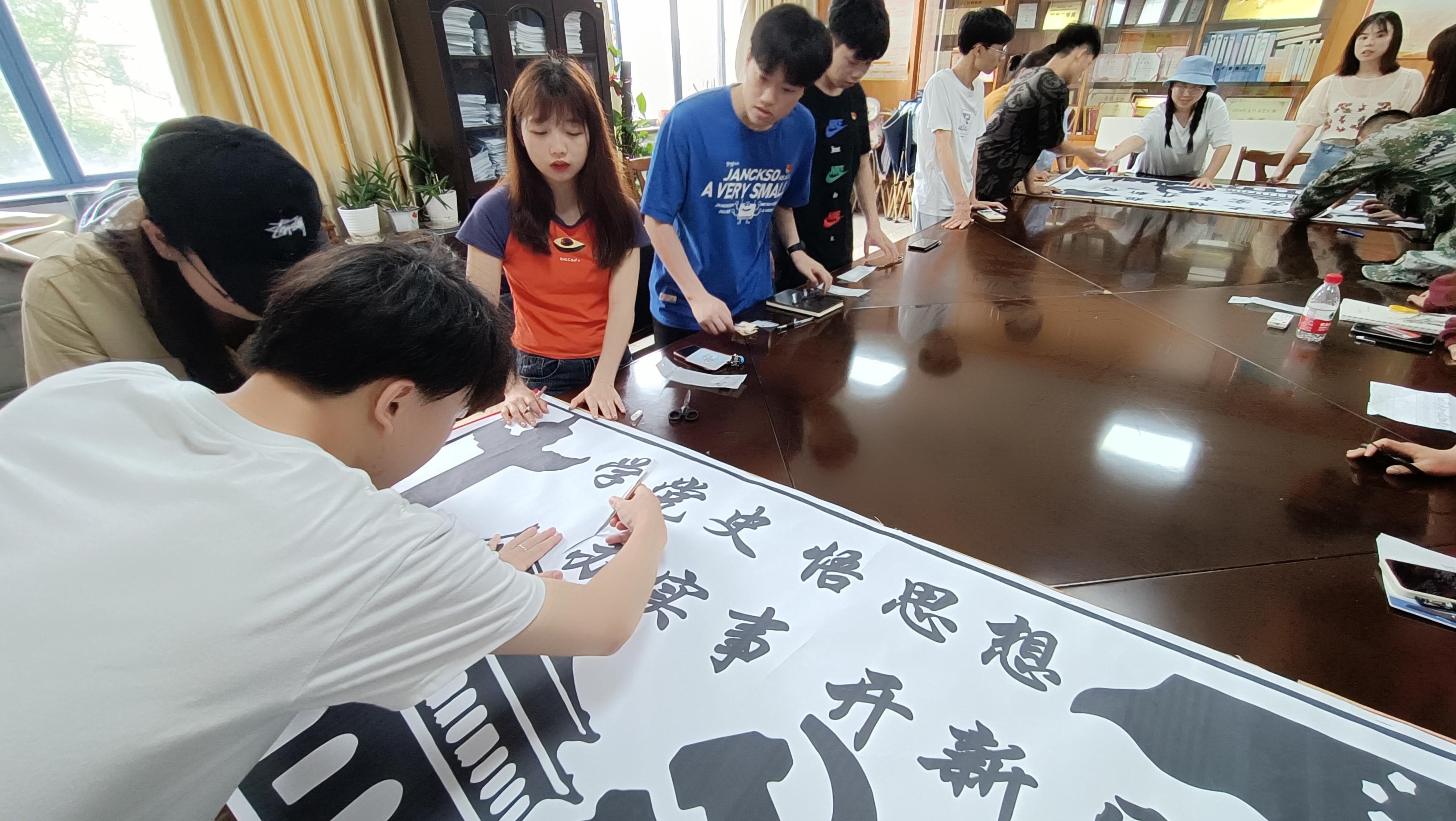 发展对象和教师党员积极参与、分工协作,现场气氛热烈。有些同学虽然略显笨拙但上手迅速,用一把剪刀在彩纸上创作出精美的文字和图案。