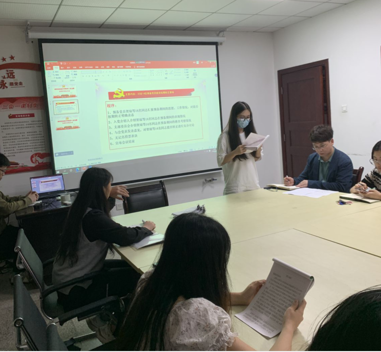 此次会议主要讨论贺琼等十四名预备党员能否按期转正事项。杜凯同志宣布大会开始,由转正对象逐一汇报预备期间的思想、工作情况,经过一年的培养,预备党员都能够严格要求自己,积极参与党组织活动,认真学习各项政策,对党组织分配的工作都能够按时完成。所有预备党员汇报完自身情况后,由入党介绍人介绍贺琼等14名同志在预备期间的表现情况,随后在场的党员对预备党员发表意见,并寄予期望,希望每位预备党员转正后在今后的工作、学习和生活中,都能以更高的标准、更饱满的热情严格要求自己,争先创优,在点滴中体现一名党员的先进性。最后拥有表决权的党员对预备党员转正进行了无记名投票表决,经过投票表决,14名预备党员均全票通过党员决议,成为中共正式党员。党支部各入党介绍人向转正的党员给予肯定和表示祝贺。
