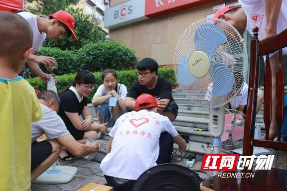 志愿者们就地维修居民们送来的家电