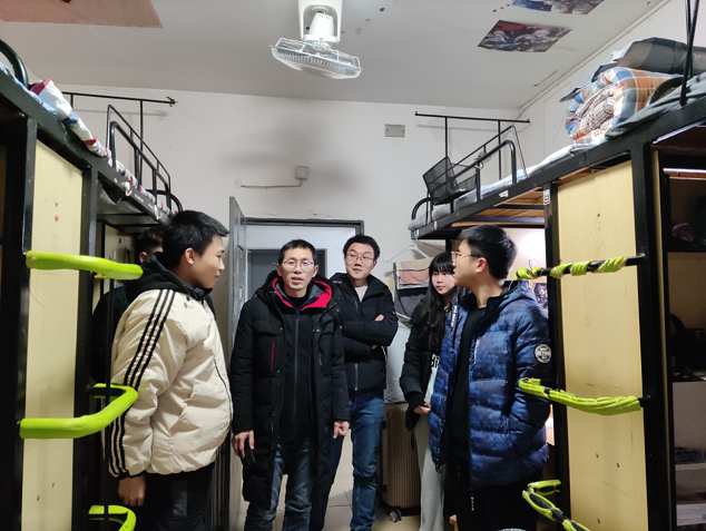 在走访过程中,老师们对同学们提出的关于学习、生活和校园安全管理等各方面的问题进行记录并一一解答,深切关心同学们寝室生活状况。老师们深切嘱咐道,同学们应加强自我管理,落实安全用电的班级制度,保持干净整洁的寝室环境,养成健康文明、积极向上的生活习惯,珍惜在校时光,充分利用课余时间开展各种有益身心健康的科研、文体活动,以此来丰富大学生活。同时,对学生们就学业进展、未来规划做了深入交流。