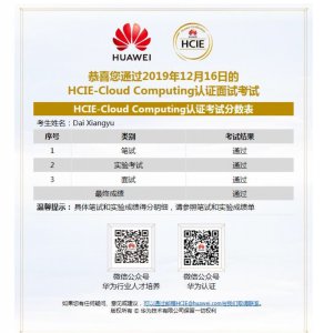 喜报:我院戴香玉老师荣获HCIE-Cloud Computing证书
