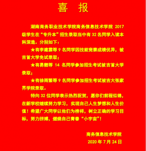喜报:2017级学生在“专升本”招生录取当中有32名同学入读本科深造