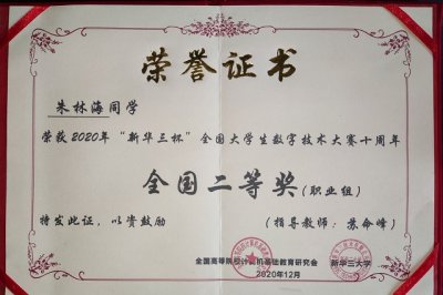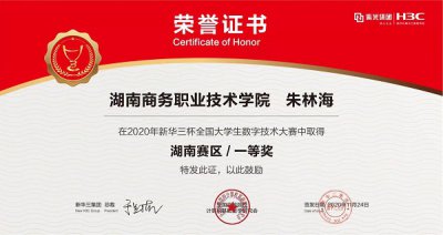 我院计算机网络技术专业朱林海荣获2020年新华三杯全国大学生数字技术大学