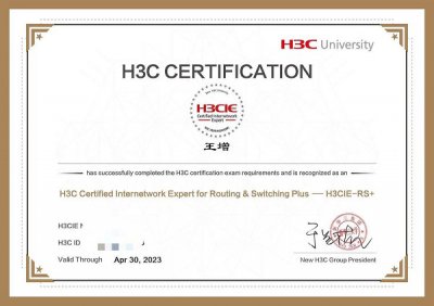 喜报:我院18计网2班王增同学考取H3C认证互联网专家证书