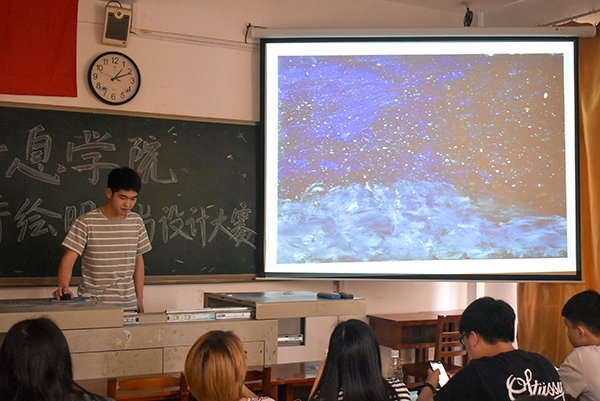手信手绘作品主要围绕“学习贯彻十九大精神”、“学雷锋、创佳话”、“青春派——我的大学,我的梦”等三大主题进行设计。经过初赛的激烈角逐,共有20名选手成功晋级决赛。决赛中选手们以PPT的形式展示参赛作品,每张手绘不仅内容充实,设计形式也极富创意。其中,给观众影响最深刻的便是17电信2班罗爱玲,她的作品以青春梦想为基调,蓝色天空代表对未来的憧憬,纸飞机代表梦想,内容贴切生活富有感染力。16软件3班凌晓慧以清晰的思路讲解了其作品的寓意及色彩,真情实意,引起现场大家的共鸣。17电商技术1班朱浈洁的作品也让观众眼前一亮,她以风趣幽默的讲解词突出其作品“致青春,双手成就梦想”的主题,同时通过星空背景与充满青春风采的音乐带动现场气氛,赢得观众热烈掌声。