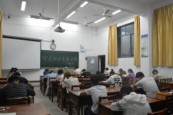 安全知识竞赛分为初赛和决赛两轮,采用试题闭卷考试的方式进行。经过4月15日晚的初赛,155名参赛选手中共有55名选手成功突围,进入决赛。决赛现场,考场秩序良好,考试有序进行。试卷一发下来,选手们立马认真答题,力争做到最好,有的低头思索,有的奋笔疾书,整个考场只听到“沙沙沙”的书写声。终考铃响,监考人员收齐试卷并宣布本次竞赛圆满结束。