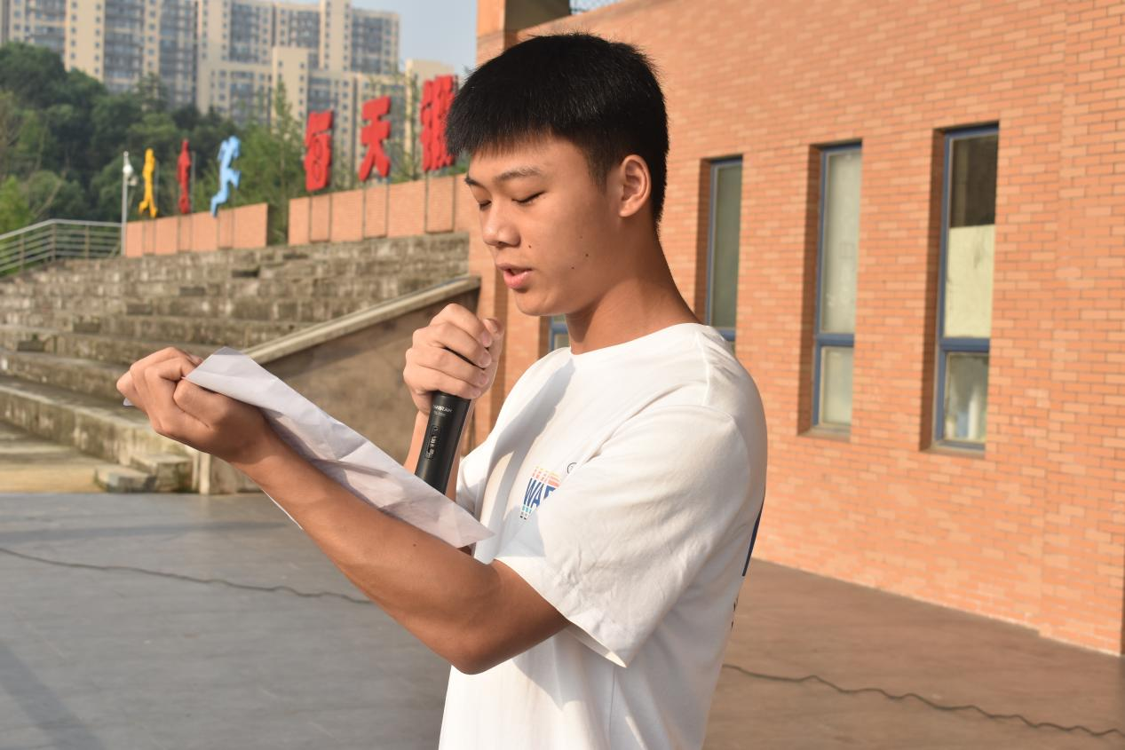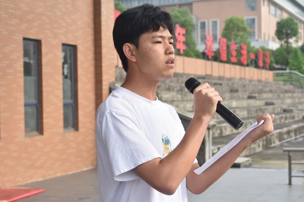 然后,20互联2班的学生代表——阳施礼,在国旗下进行了发言。在这里,他为同学们总结了几点学习方法:1、制定好学习计划,克服缺点,发扬优点,使自己更加优秀;2、全面发展,不偏科;3、要有效率的学习,用对学习方法,妥善处理学习和工作之间的时间分配,多温习功课,扩宽视野;4、保持独立思考的同时,虚心向老师请教,与同学多交流、学习。提及少年,定与平庸相斥,让我们为了我们的未来而拼搏奋斗。