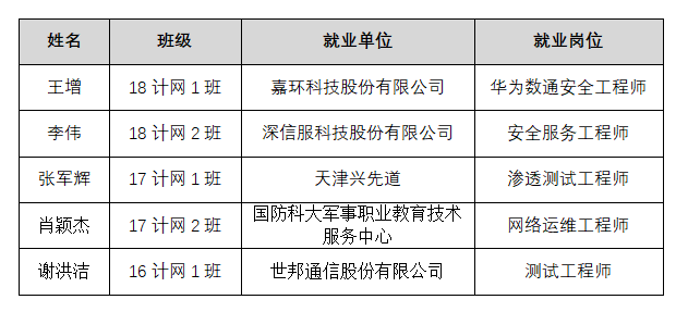 18计网1班王增同学,湖南省首位在校期间获得H3C专家证书的优秀校友,凭借过硬的职业素养和职业技能,一毕业就多次升职,成为一名优秀的华为数通安全工程师。
