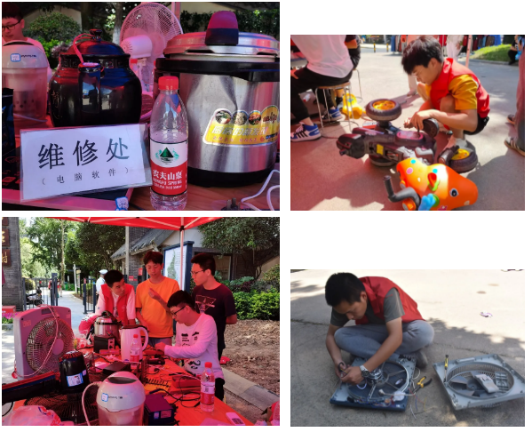 上午8点开始,志愿者们纷纷前往社区开展活动。期间,志愿者们分工明确,活动开展有条不紊。维修组是此次活动的主力军,负责家电维修工作;后勤组的同学主要负责器材搬运及协助其他组;宣传组负责向社区群众宣传此次活动,鼓励大家前来维修,并负责活动拍摄;统计组负责统计维修情况。