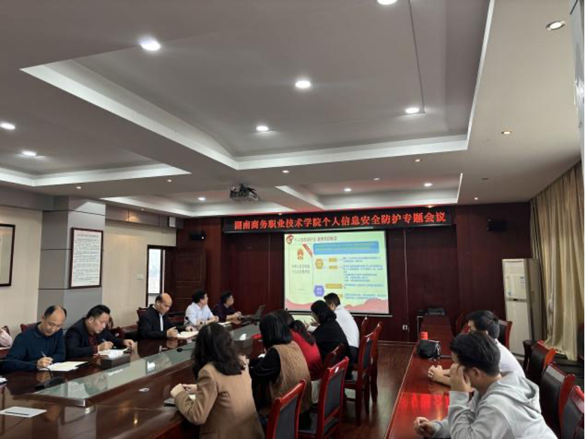 会上,实训与信息管理中心主任毛政珍深入解读了《中华人民共和国个人信息保护法》;《中华人民共和国网络安全法》的核心要义,并结合当前严峻的网络安全形势,通过一系列真实案例进行了生动剖析。为系统化加强个人信息全生命周期管理,规范信息的收集、存储、使用、传输、共享及销毁各环节,会议重点讨论并审议了《湖南商务职业技术学院个人信息安全防护制度(草案)》,与会人员积极建言,进一步完善了制度内容。