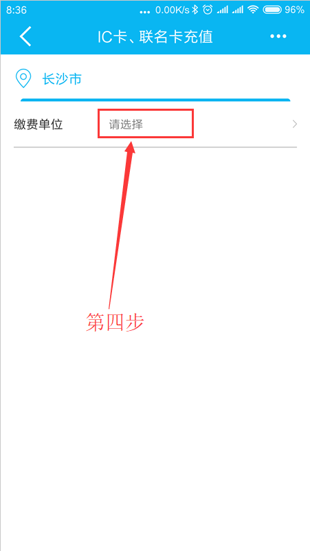 第四步,在“IC卡、联名卡充值”中,选择“缴费单位”