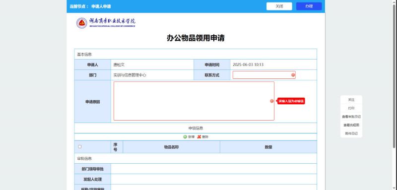已下图为例,点击“办理”按钮,跳转到申请界面
