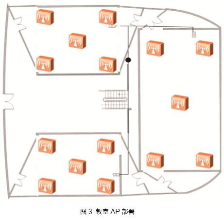 无线网络设计的主要指标是网络的覆盖面积和系统容量,在满足用户需求的前提下,最大限度减少AP数目。学校无线建设区域主要有教室、图书馆和学生宿舍三类,对无线网络的需求各不相同。下面对这三类场景下AP的部署进行说明。
