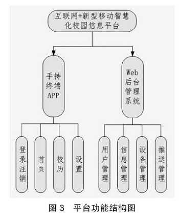 “互联网+”新型移动智慧化校园信息平台是一个基于“互联网+”的新型智慧信息系统,覆盖PC客户端和移动设备客户端,主要分为“移动客户端”、“后台管理系统”两大子系统。