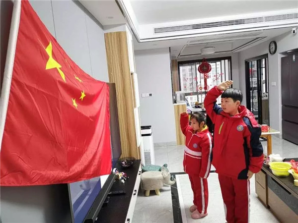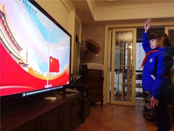 庄严的国歌声中,五星红旗冉冉升起,一个个抗击疫情的镜头连续闪过……2月10日上午8点30分,长沙市80万中小学生身着校服,通过电视、电脑等在家中参加新学期第一课。