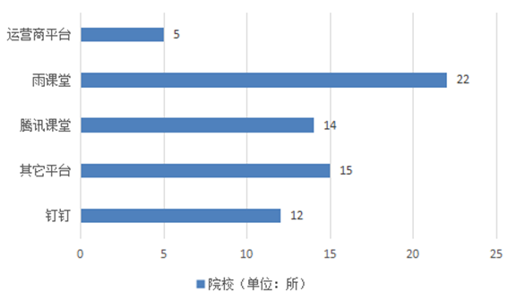 在拟使用直播教学这种方式的高校中,他们拟采用的平台情况如图9所示。73%的高校计划使用雨课堂,50%的高校选择其他平台,47%的高校拟采用腾讯课堂,还有40%的高校拟采用钉钉,另有17%的高校拟采用运营商平台。