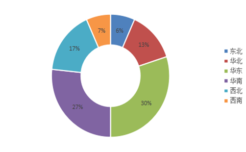 调研反馈院校所在地区如图1所示。其中华东地区高校最多,共9所,占比30%;华南地区8所,占比27%;西北地区5所,占比17%;华北地区4所,东北与与西南地区各两所。我国六个区域的高校均有所覆盖。