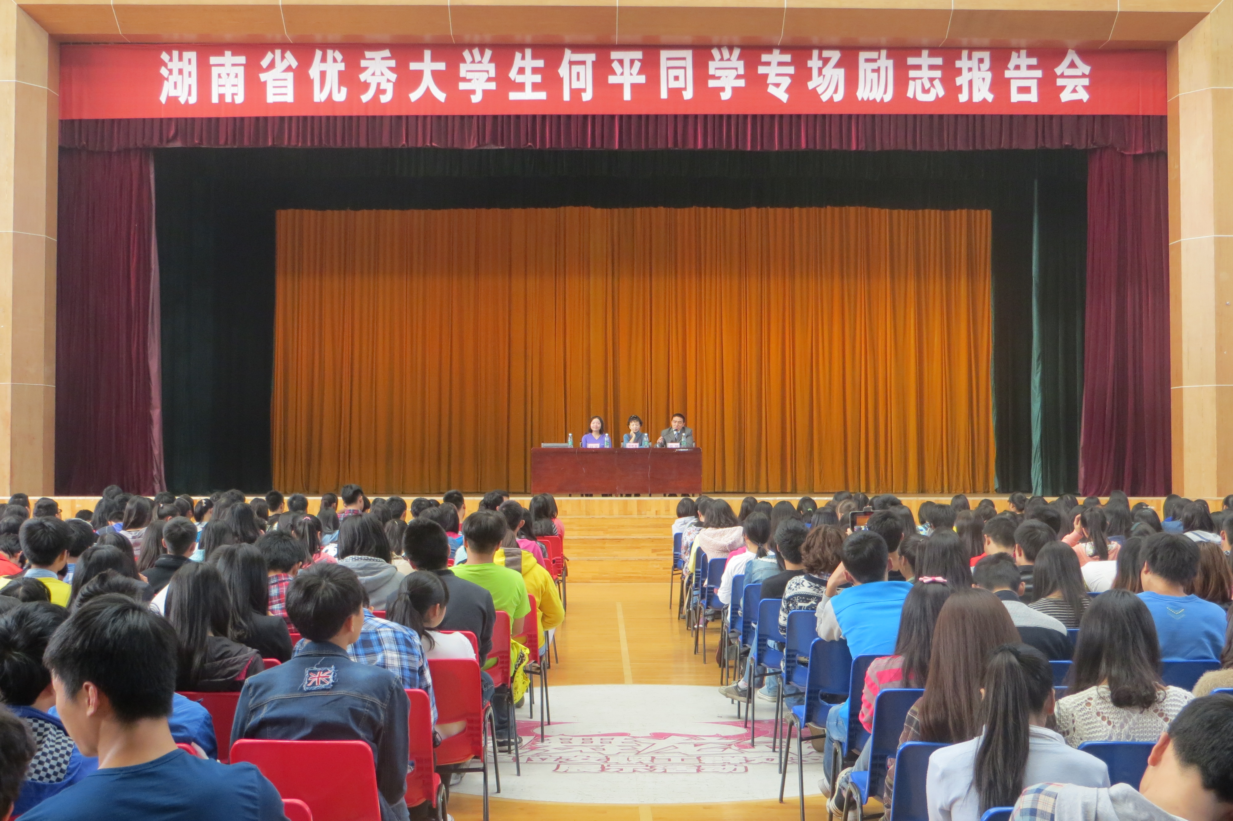 为进一步加强和改进我院大学生思想政治教育工作,激励广大青年学生健康成长、立志成才,培养他们孝老爱亲的高尚道德品质、勇于担当的责任意识、乐观向上的人生态度和顽强拼搏的进取精神,思政课部和学生工作部联合举办了湖南省优秀大学生何平同学励志报告会和学习何平同学心得体会征文比赛。