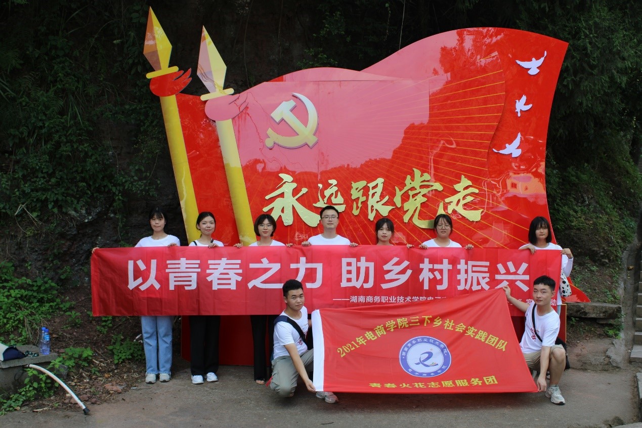 本网讯 (通讯员:蒋德斌)2021年7月12日,湖南商务职业技术学院“青青火花志愿服务团”三下乡社会实践团队来到素有“中国长寿之乡”美称的怀化市麻阳苗族自治县,开展“以青春之力,助乡村振兴”三下乡社会实践活动,电商学院团总支书记吴苾、辅导员杨柯及团队成员参与此次实践活动。