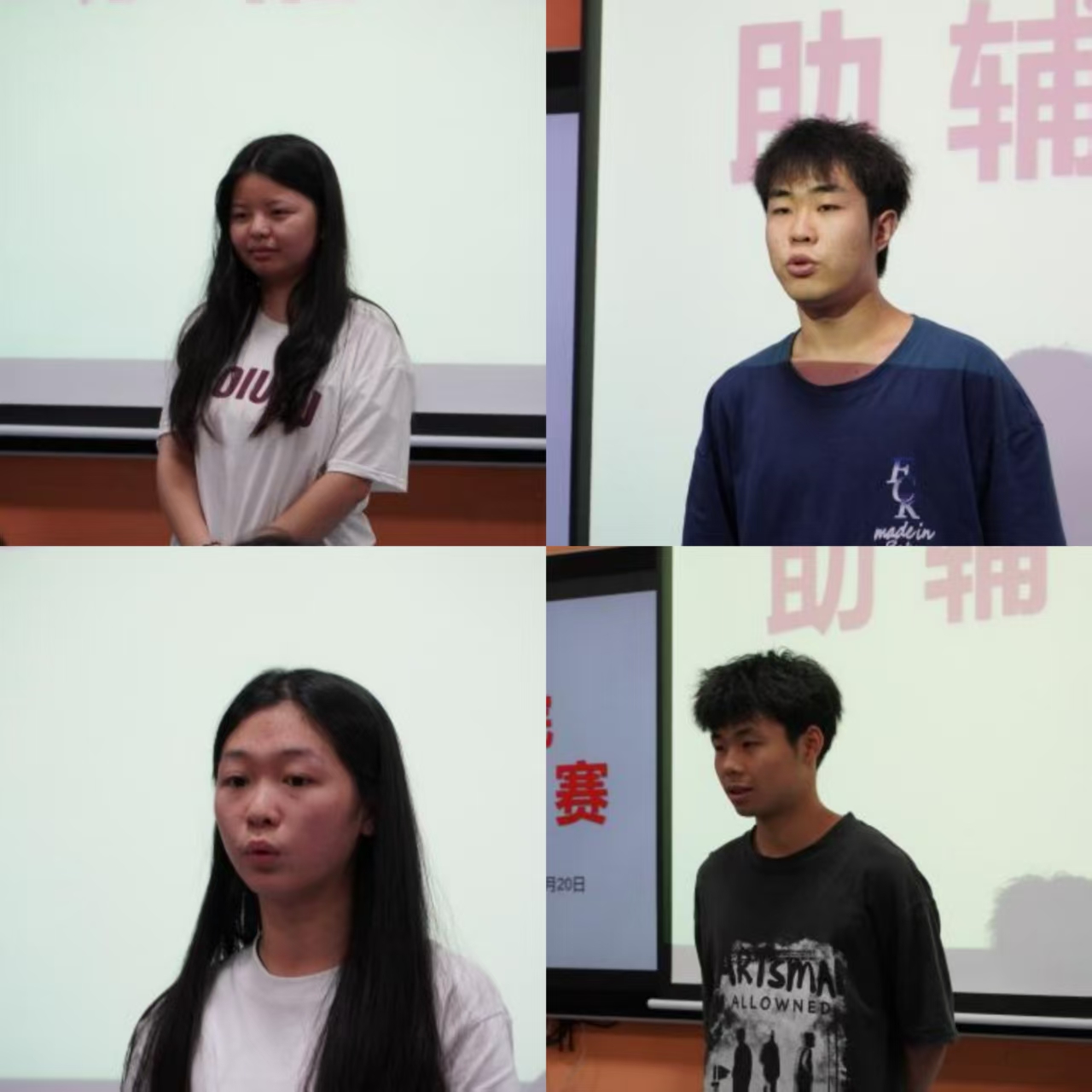 选拔现场气氛紧张而热烈,候选人依次登台,从容分享在班级或团学分会的工作经验,展示个人优势。面对即兴问答环节,选手们沉着应答,用清晰的思路与真诚的表达,展现对助理辅导员岗位的深刻理解与履职决心。