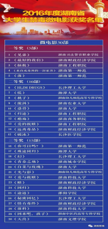 近日,省教育厅、省禁毒委员会公布了“无毒青春,健康生活”为主题的2016年度湖南省学生毒品预防教育项目评选结果,我校学生禁毒微电影作品《瘾殇荣获2016年度湖南省大学生禁毒微电影等奖。