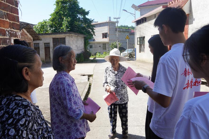 “青青火花”志愿服务队逐户走访村民,挨家挨户地开展安全知识宣传。向村民详细讲解未成年人?;?、防溺水、家庭消防安全、燃气规范使用、道路交通法规等内容,向乡村居民普及养老保险缴费政策,引导村民增强安全意识、了解惠民政策。同时,倾听村民在生活中的需求与难题,为后续帮扶行动积累信息,让关怀与安全知识同步送达村民家中。