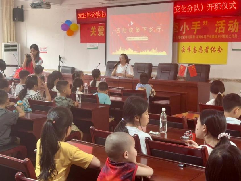 (通讯员:戴娟 白一茜)2025 年7月9日下午,“爱向远山行团队”安化分队在益阳市安化县长塘镇岳峰村成功开展了一场学生资助政策讲座,旨在将国家及地方的学生资助政策带到乡村,帮助家庭经济困难的学生和家长了解相关政策,减轻教育负担,助力乡村学子追逐学业梦想。