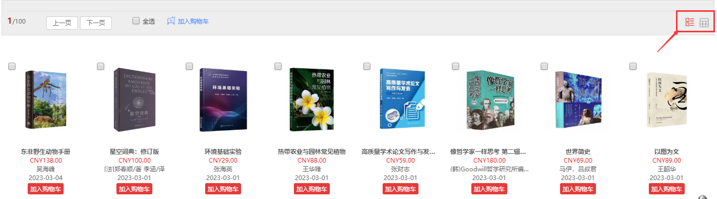 1.1 平台可按图书的出版时间、定价排序。也可按价格区间、出版时间段、重点图书【即图书馆关注的重点出版社】进行筛选。