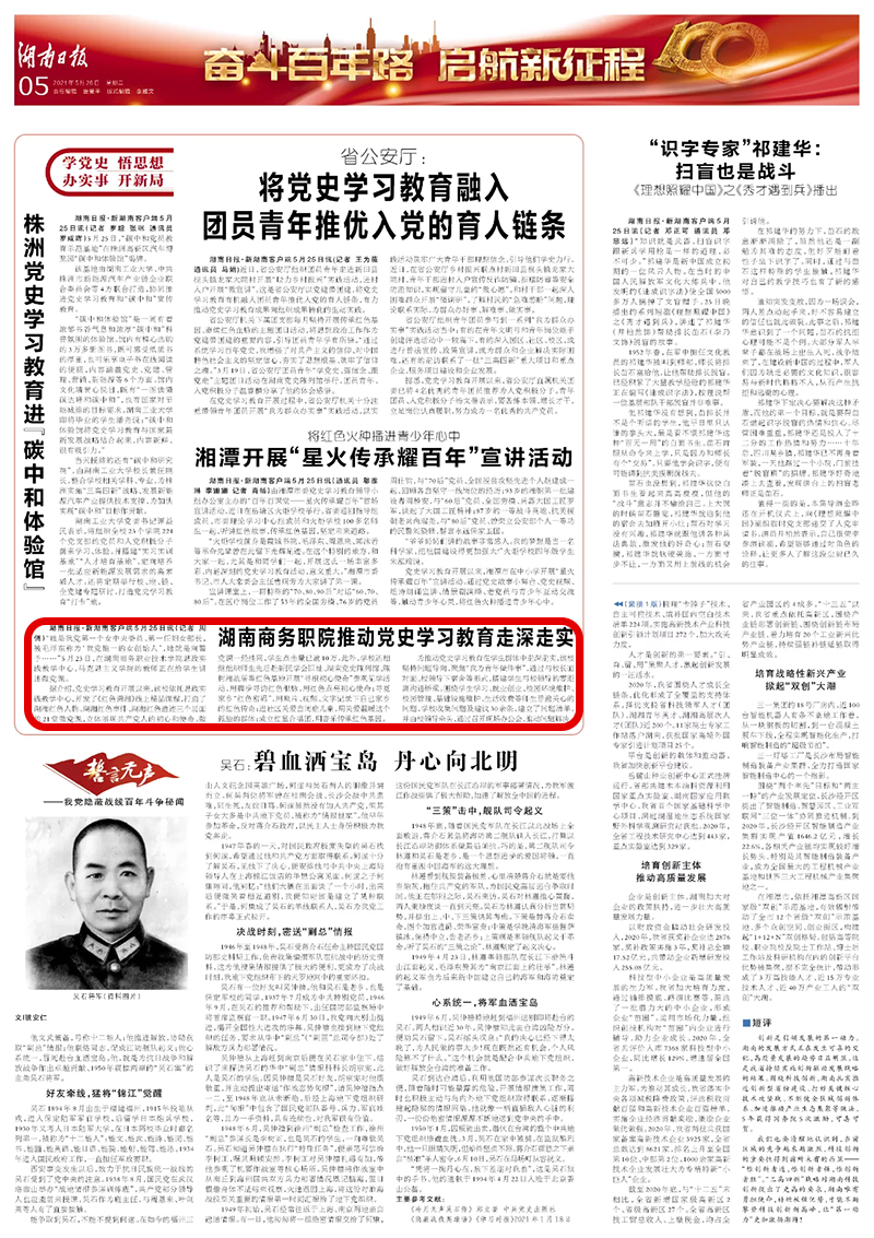 湖南日报报道——湖南商务职院推动党史学习教育走深走实