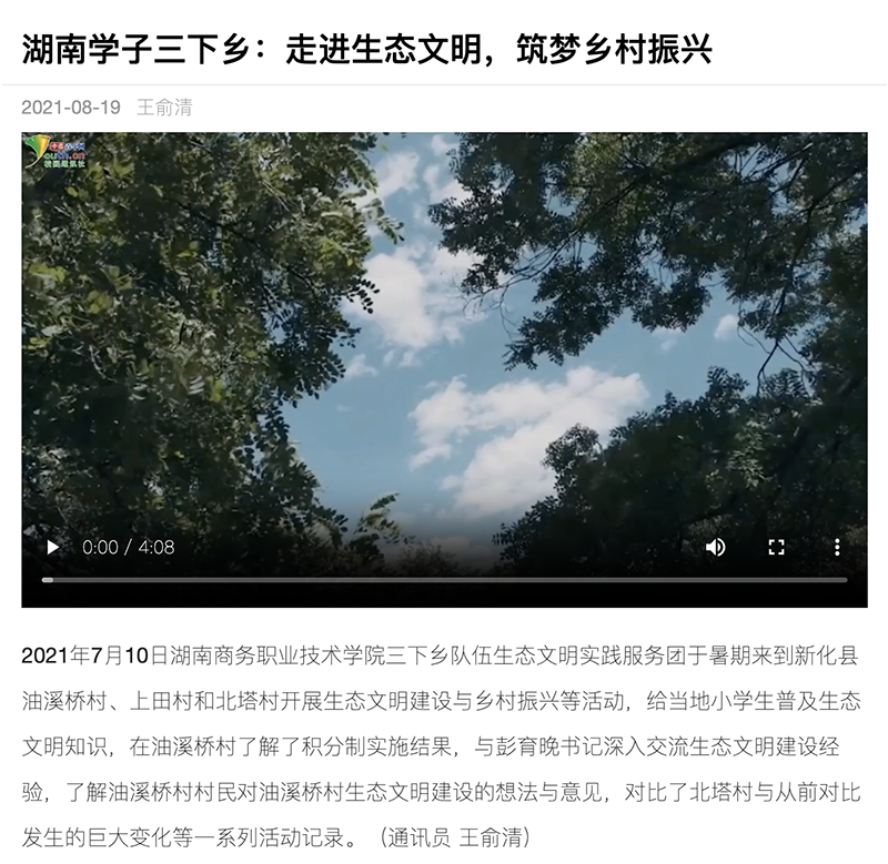 中国青年网报道——湖南学子三下乡:走进生态文明,筑梦乡村振兴