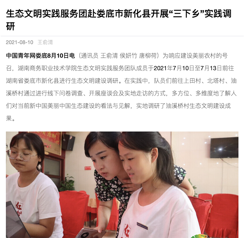 中国青年网报道——生态文明实践服务团赴娄底市新化县开展“三下乡”实践调研