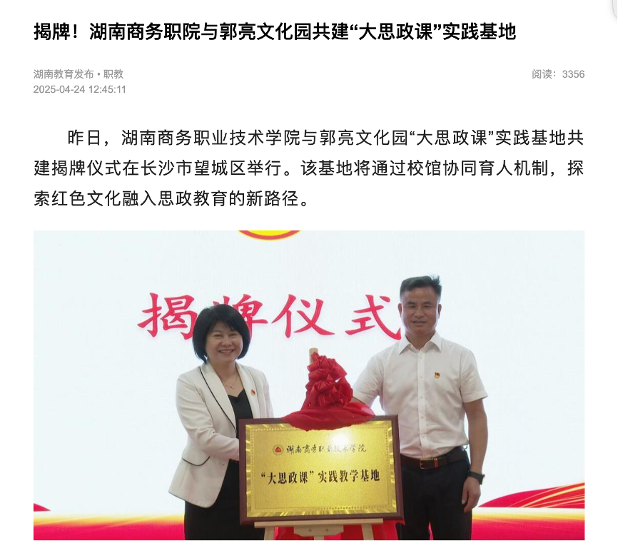 湖南教育发布报道——揭牌!湖南商务职院与郭亮文化园共建“大思政课”实践基地