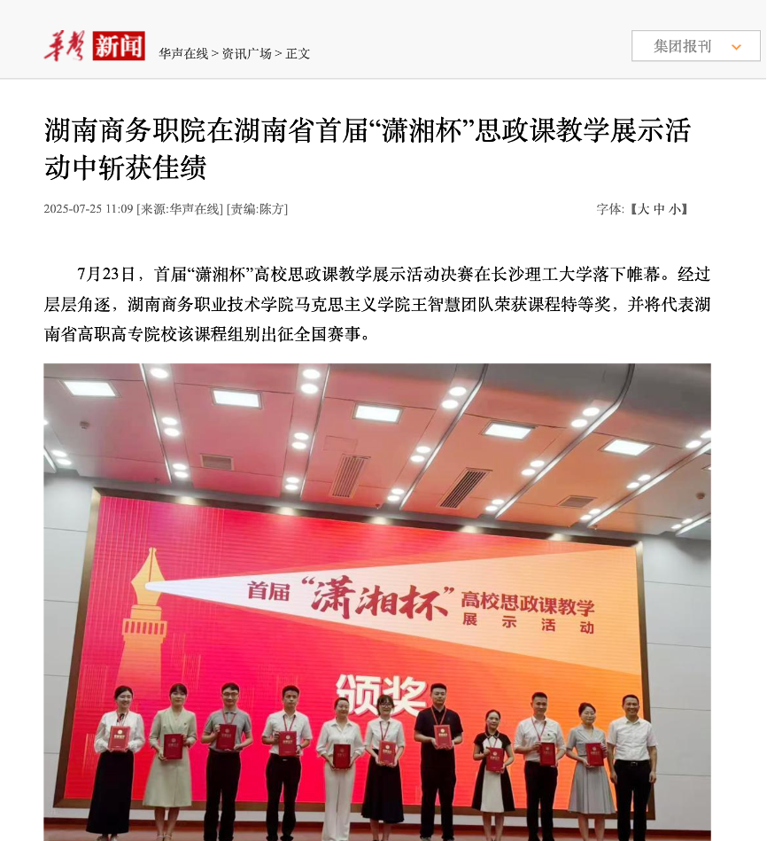 华声在线报道——湖南商务职院在湖南省首届“潇湘杯”思政课教学展示活动中斩获佳绩