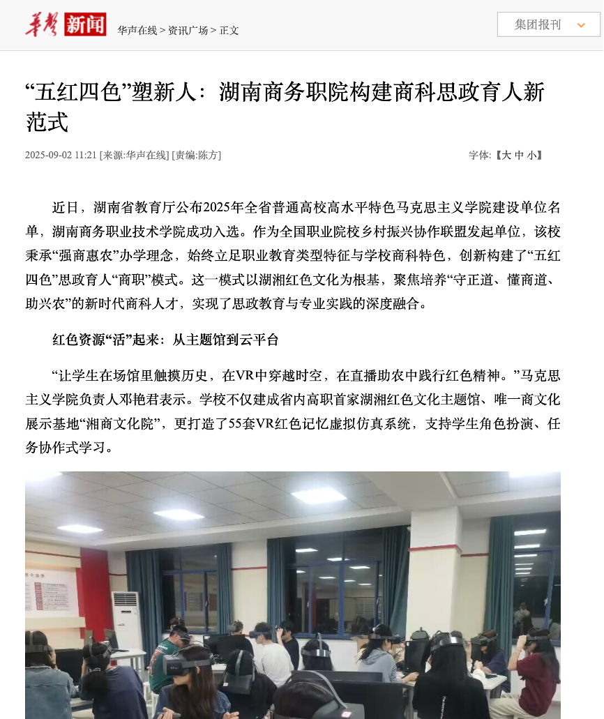 华声在线报道——“五红四色”塑新人:湖南商务职院构建商科思政育人新范式