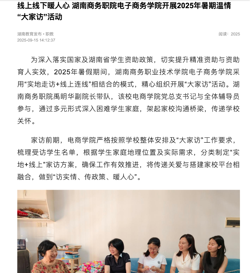 湖南教育发布报道——线上线下暖人心 湖南商务职院电子商务学院开展2025年暑期温情“大家访”活动