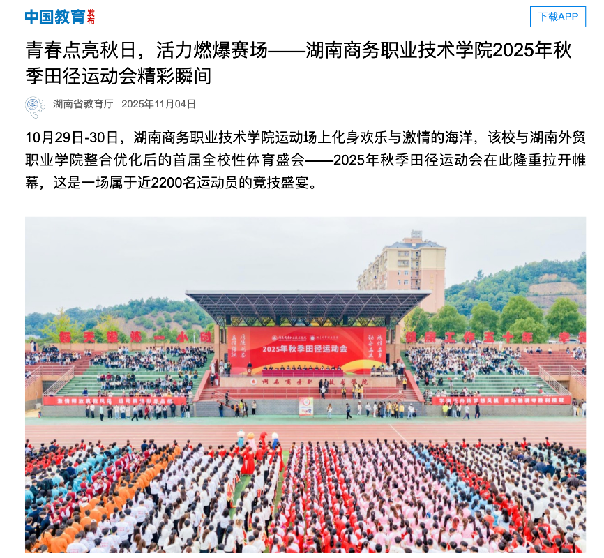 湖南教育发布报道—— 青春点亮秋日,活力燃爆赛场——湖南商务职业技术学院2025年秋季田径运动会精彩瞬间