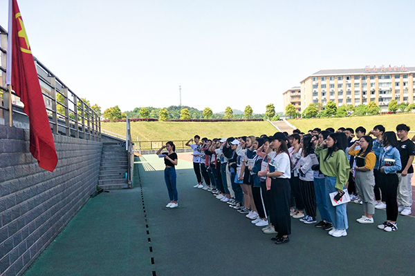 一场主题为“读经典著作,享幸福人生,建书香校园”的团日活动在学校田径场举行。