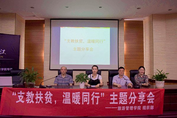 为激励大学生积极投身于社会实践,提高旅管学院学生的综合素质,增强其社会责任感与使命感,进而关注社会、服务社会。由旅管学院团总支主办的“支教扶贫,温暖同行”主题分享会于5月14日19:00在办公楼一楼学术报告厅开展。旅管学院党总支黄铖书记、学生党支部欧阳序华书记、旅管学院教工党支部张梦娜书记、辅导员吴丹老师等出席本次分享会。
