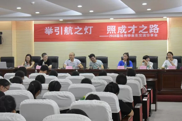 为在全院营造积极向上的学习氛围,鼓励在校生树立发展目标,提升发展动力,同时也增强15级毕业生的归属感与荣誉感,6月25日晚,旅管学院在办公楼6楼职工会议室举行了2018届优秀毕业生交流分享会。该院党总支副书记黄铖、辅导员代表,及三百余名学生代表参与了此次分享会。